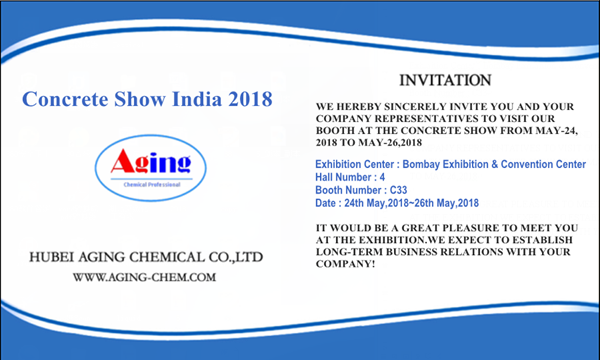 As we know,this year India customs began to charge anti-dumping duty for SNF,the exporting business becomes very hard for China suppliers,under this tough situations,we,Hubei Aging Chemical Co.,Ltd still insist to attend the Concrete Show In India The Concrere Show as held at the Bombay Convention&Exhibition Centre from 24th,May to 26th,May, which attracted more than 200 exhibitors from all over the world. With nearly 10,000 professional buyers, it is a professional exhibition in the field of concrete construction in India.